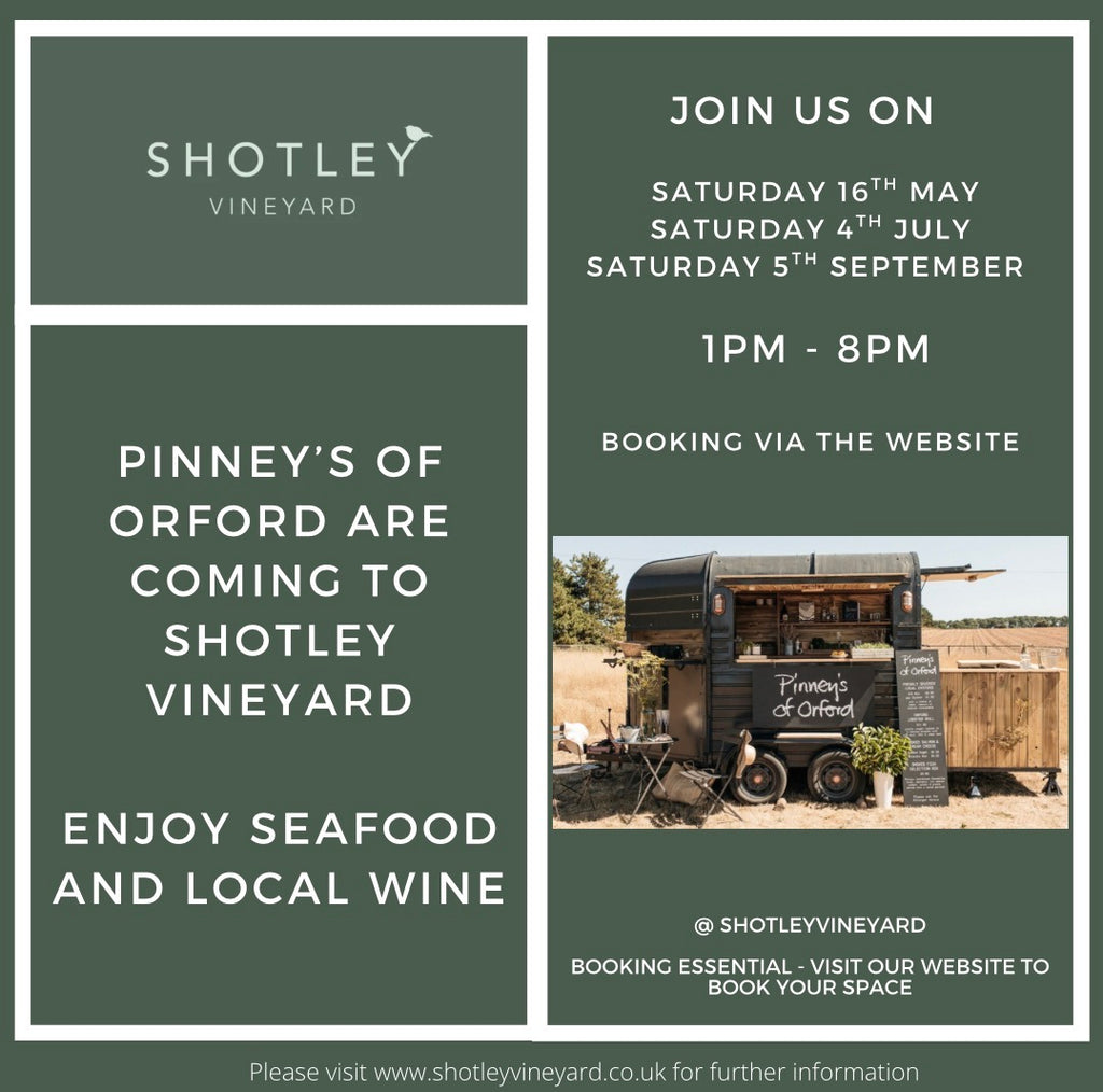 We are excited to welcome back Pinney’s of Orford to Shotley Vineyard.